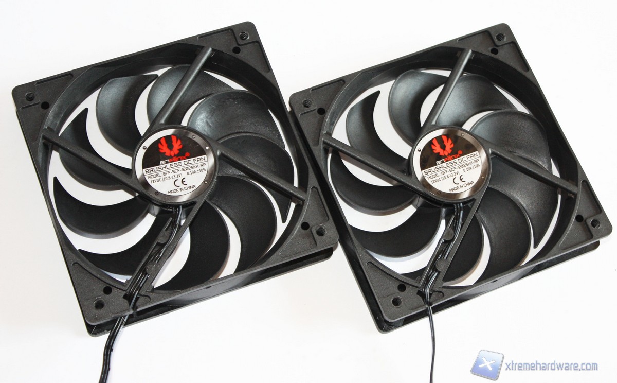 La dotazione potenziale del case è buona dato il prezzo. Comunque sia, sono fornite due ventole, entra,be da 120mm modello BFF-SCF-12025KK-RP.