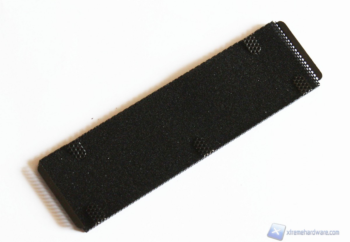 Dettaglio dei filtri installati nel copri slot da 5,25 pollici e in corrispondenza della ventola dell’alimentatore.